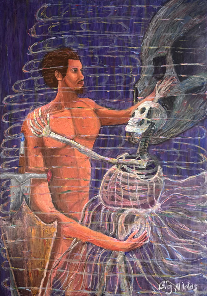 Ursprünglich aus Ulm stammend, arbeitet Niklas hauptsächlich mit Acrylfarbe und Ölkreide auf Leinwand. Dadurch verbindet er Präzision mit intuitivem Arbeiten und entwickelt eine lebendige Bildsprache, die zur Selbstreflexion und emotionalen Resonanz einlädt.