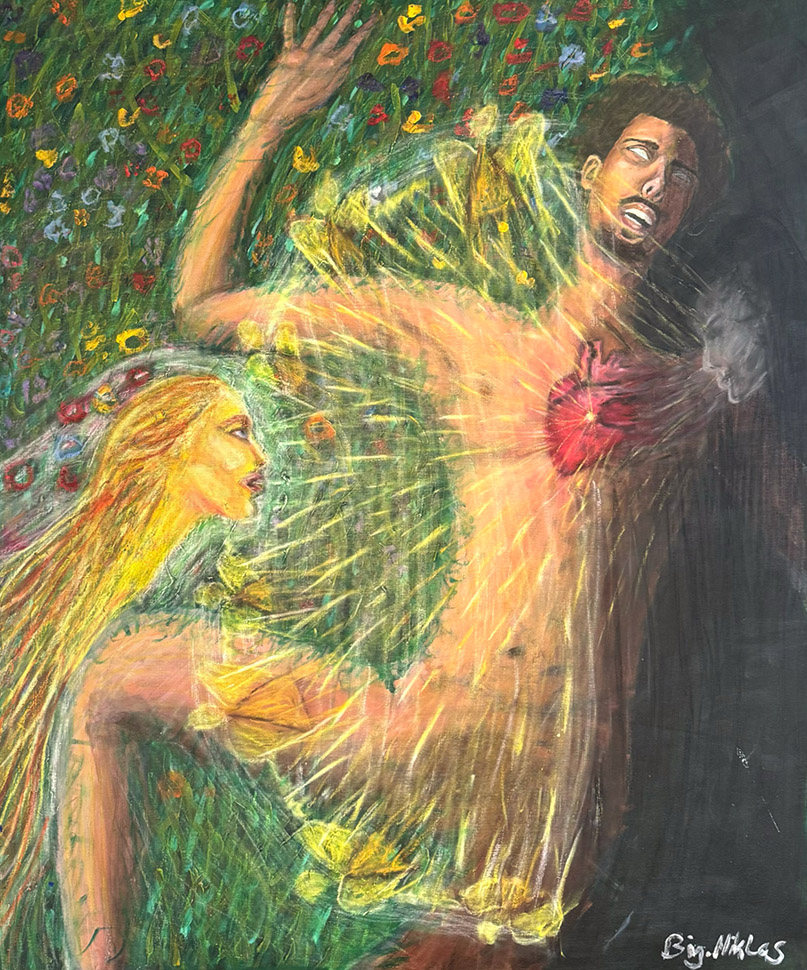 Niklas Böhle ist ein zeitgenössischer Maler, der figurative und abstrakte, spielerische Elemente verbindet, um Themen wie Wachstum, Selbsterkenntnis und Transformation zu erforschen. Mit seiner Kunst möchte er Schönheit und Bedeutung in die Welt bringen – jenseits der Oberflächlichkeit, die er oft wahrnimmt. Er versteht seine Kunst als eine Co-Kreation mit dem Leben, als etwas, das das Leben ehrt.