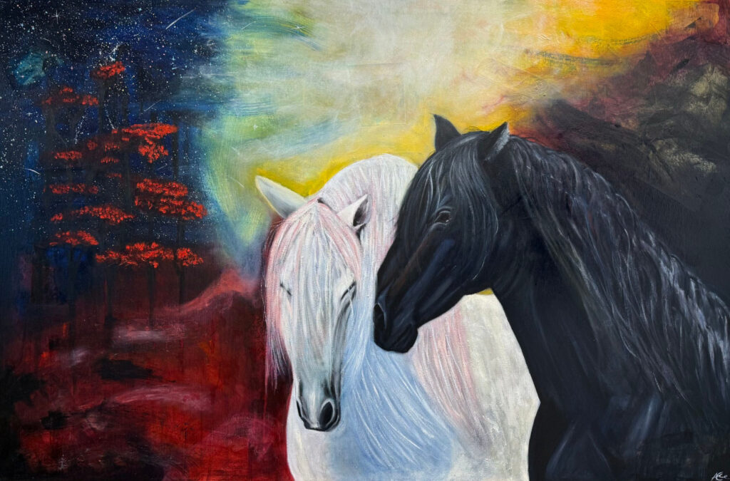 Um diese bedeutungsvollen Bilder zu schaffen, nutze ich die unendliche Freiheit der Mischtechnik. Sie geben mir die Möglichkeit, mich mit jeder Bewegung und jedem Pinselstrich inspirieren zu lassen. Oft lasse ich die Dynamik des Prozesses entscheiden, was aus dem Bild werden soll. Es ist immer wieder spannend und überraschend, wie mein Bild ausfällt. Alle meine Bilder veredele ich in den letzten Schichten mit Ölfarbe, um diese mehr zum Leuchten zu bringen und so zum Leben zu erwecken.