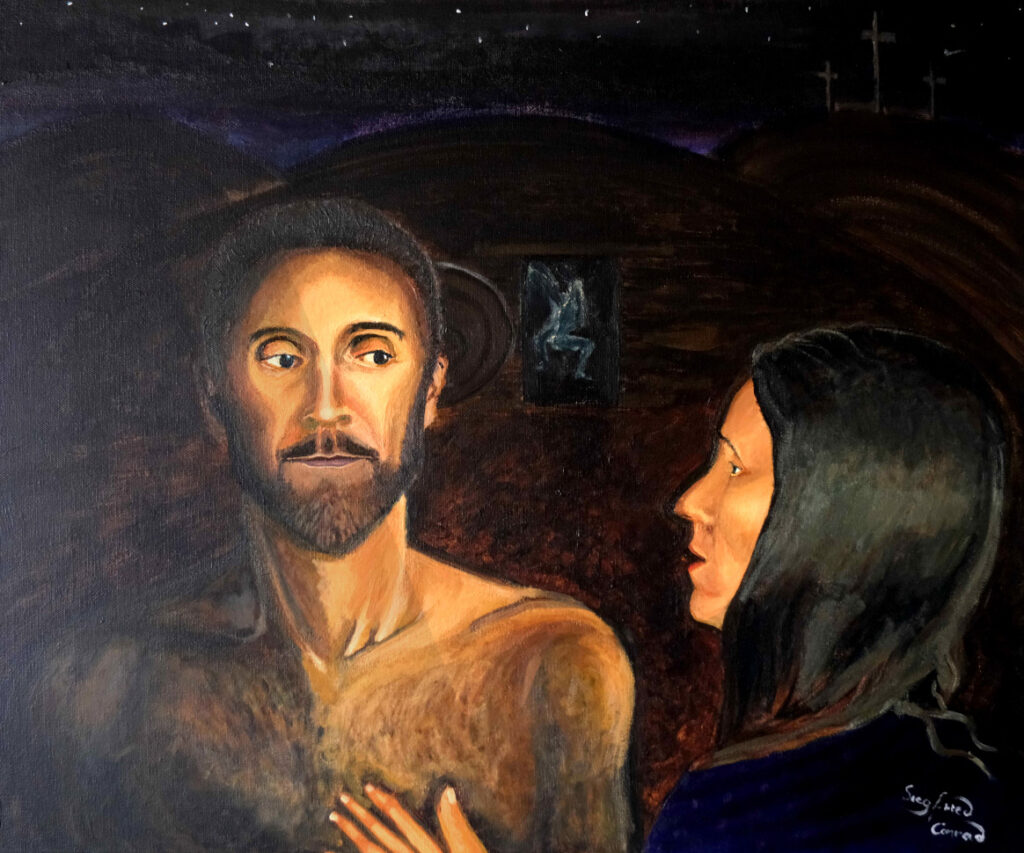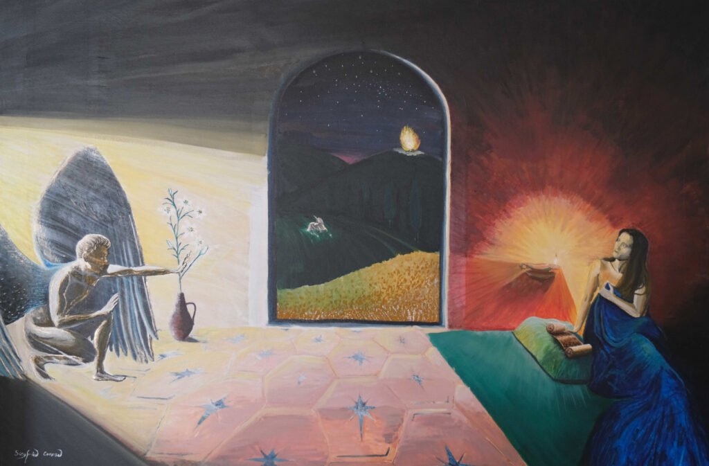 Im ausgestellten Zyklus sucht der Künstler nach der tieferen Wahrheit des Seins in einzelnen Szenen aus der Bibel. Was fühlte und dachte Jesus, als er das Kreuz nach Golgatha trug? Was der Erzengel Gabriel, als er Maria verkündete, dass sie den Sohn Gottes empfangen würde? Was Maria Magdalena, als ihr der totgeglaubte Geliebte begegnete?