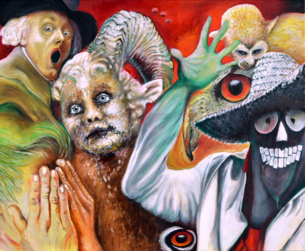 Formal und gedanklich knüpfe ich an den Surrealismus an – an jene Künstlerinnen und Künstler, die das Unbewusste und das Absurde ins Zentrum rückten. Doch übersetze ich diesen Ansatz in die Gegenwart, um innere Brüche, emotionale Entfremdung und den Zustand einer fragilen Welt sichtbar zu machen.