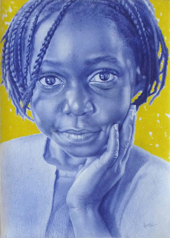 Enam Bosokah hat die letzten Jahre damit verbracht, mit dem Kugelschreiber zu zeichnen, hauptsächlich Porträts, Porträts von alltäglichen Menschen. Mit vielen Schichten von breiten und gekreuzten Linien entstehen erstaunliche Zeichnungen, oft inspiriert von Fotos oder festgehaltenen Bildern. Meisterlich verfeinert Enam Bosokah sie mit subtilen Schattierungen und Texturen, so dass der Eindruck einer Dreidimensionalität entsteht.
