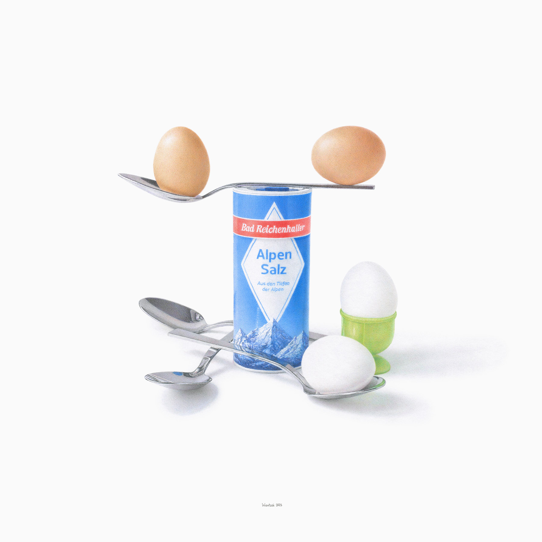 Der Künstler heißt Richard Wientzek, geboren 1970 in Bamberg, wo er lebt und arbeitet. Bekannt ist er für extrem präzise 1:1-Zeichnungen von Alltagsobjekten – Brot, Geldscheine, Spielzeug, Tiere. Mit Tuschepunkten und Farbstiften erzeugt er fast fotorealistische, zugleich poetische Bilder. Sein Thema: das vermeintlich Banale wird zur Ikone – humorvoll, konzentriert, bedeutungsvoll.