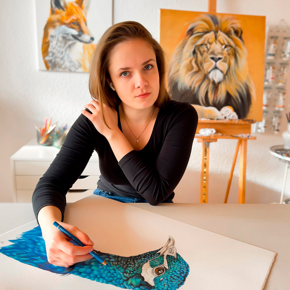 Ich (*1997, Stuttgart) bin autodidaktische, freiberufliche Künstlerin und beschäftige mich in meinen Bildern überwiegend mit Wildtieren, aber nicht aus einem konservatorischen Ansatz heraus, sondern vielmehr weil mich die Schönheit, der Charakter und die Vielfältigkeit dieses Genres immer wieder erfreut und ich diese Freude und das Staunen gerne an den Betrachter meiner Kunst weitergeben möchte. Sauberes Handwerk und ein hochwertiges Ergebnis, das Sammler meiner Kunst lange begleitet, sind mir außerdem sehr wichtig.