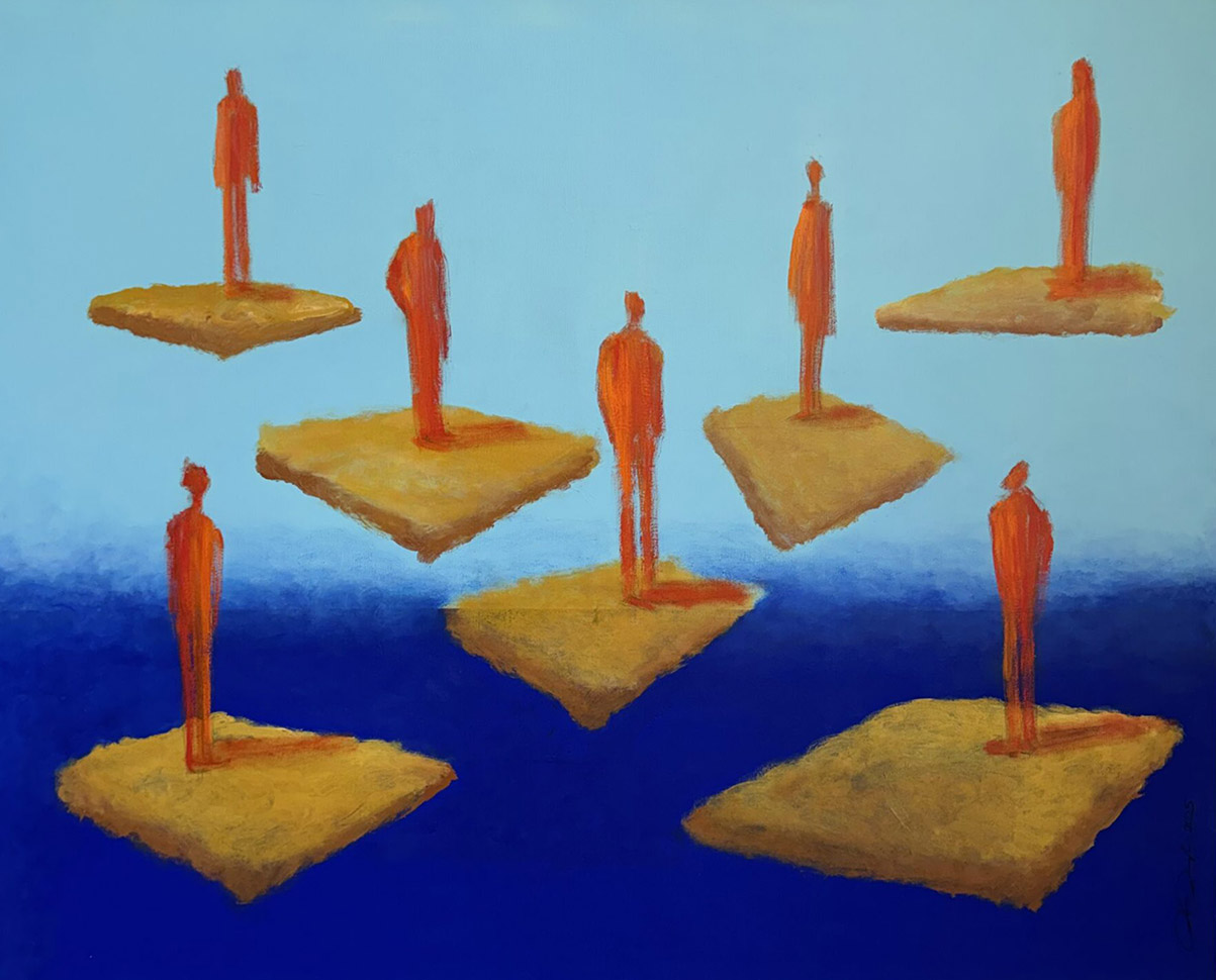 „Als Innenarchitekt habe ich Räume sichtbar und fühlbar gemacht. Heute, als Maler, mache ich sichtbar wie wir fühlen, was uns bewegt- und was uns dennoch vorwärts gehen lässt – wer wir sind.
