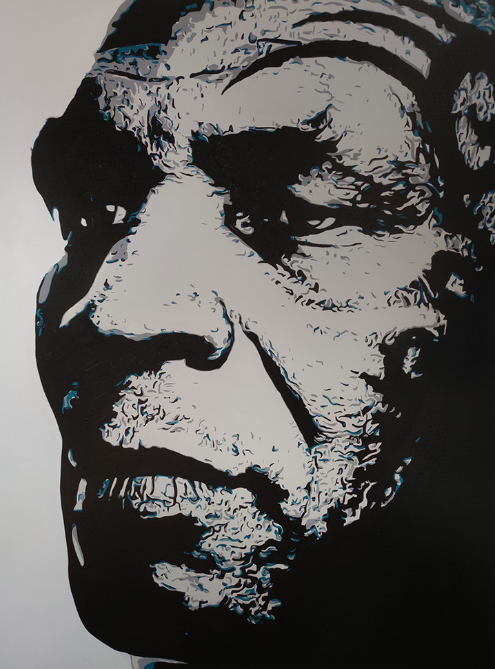 „Seit 2008 entwickle ich eine künstlerische Praxis, deren formaler Kern der Punkt ist. Als elementare Einheit von Ordnung und Irritation strukturiert er jedes meiner Werke. Im Fokus stehen Menschen mit biografischer Tiefe – nicht als Porträt, sondern als Verdichtung von Erfahrung.