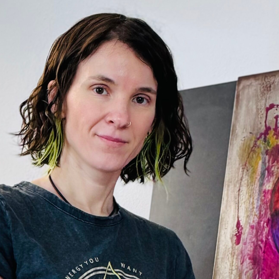 Ich arbeite mit leuchtenden Acrylfarben auf rostigem Stahl oder unebener Alufolie. Meine Bilder leben vom Gegensatz: raues Metall trifft auf strahlende Farben, Technik auf Natur. Ich experimentiere mit Rost, Oxidation und Struktur – kombiniert mit klaren Formen und intensiven Tönen. Die Motive bewegen sich zwischen Anatomie, Gefühl und Abstraktion. Jedes Werk entsteht in vielen zufälligen Schichten – mal mit dem Spachtel, oft mit den Fingern.