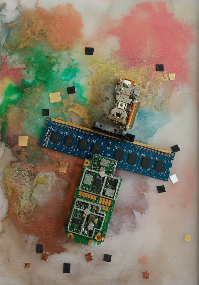 „Die Verbindung unterschiedlicher Materialien – Keramik, Holz, Glas und elektronischer Bauteile – bildet die Grundlage meiner künstlerischen Arbeit. In der bewussten Kombination von handwerklich Geformtem und technisch Funktionalem entstehen Objekte, die zwischen Figur und Fragment, zwischen Vergangenheit und Gegenwart oszillieren.