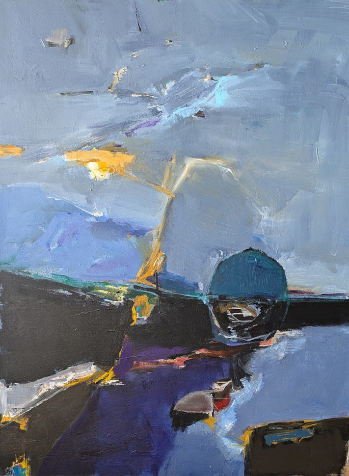 Mit dynamischen Linienformen durchschneide ich das Bildfeld damit sich zum Teil figurative Darstellungen andeuten. Das willkürliche Zusammentreffen von zarten Linien und dominierenden Farbflächen ergeben wirksame Spannungselemente.