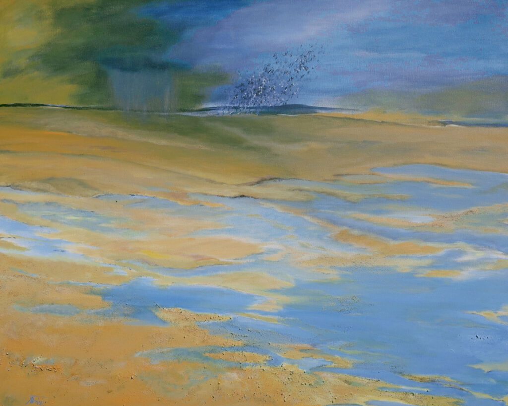 In ihren abstrakten Bildern verwendet sie Acrylfarben in Verbindung mit vielen andere Materialien (Sand, Asche, Baumwolle, Papyrus- und Japanpapiere, etc.). Inspiriert von realen Dingen, Stimmungen, Landschaften und der Natur setzt sie Farben, Formen, Linien und Texturen im Wechselspiel zwischen kreativem Handeln und analytischer Betrachtung in abstrakte Kompositionen um. Bei naturalistischen Bildern drängt es sie, die Großartigkeit, die Magie der Natur mit dem Pinsel zu durchdringen. In der Gewissheit des Kreislaufs und Neubeginns möchte sie die Natur auch in der Ästhetik der Vergänglichkeit in ihrer würdevollen Anmutung darstellen.